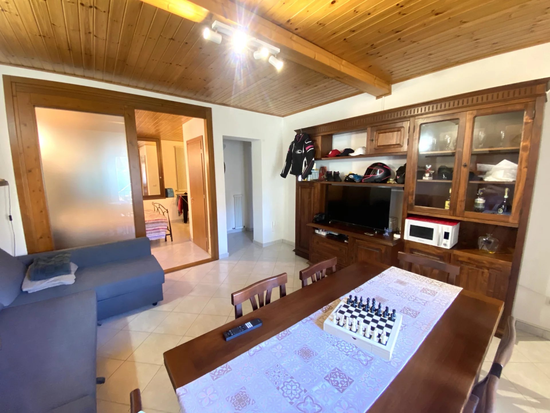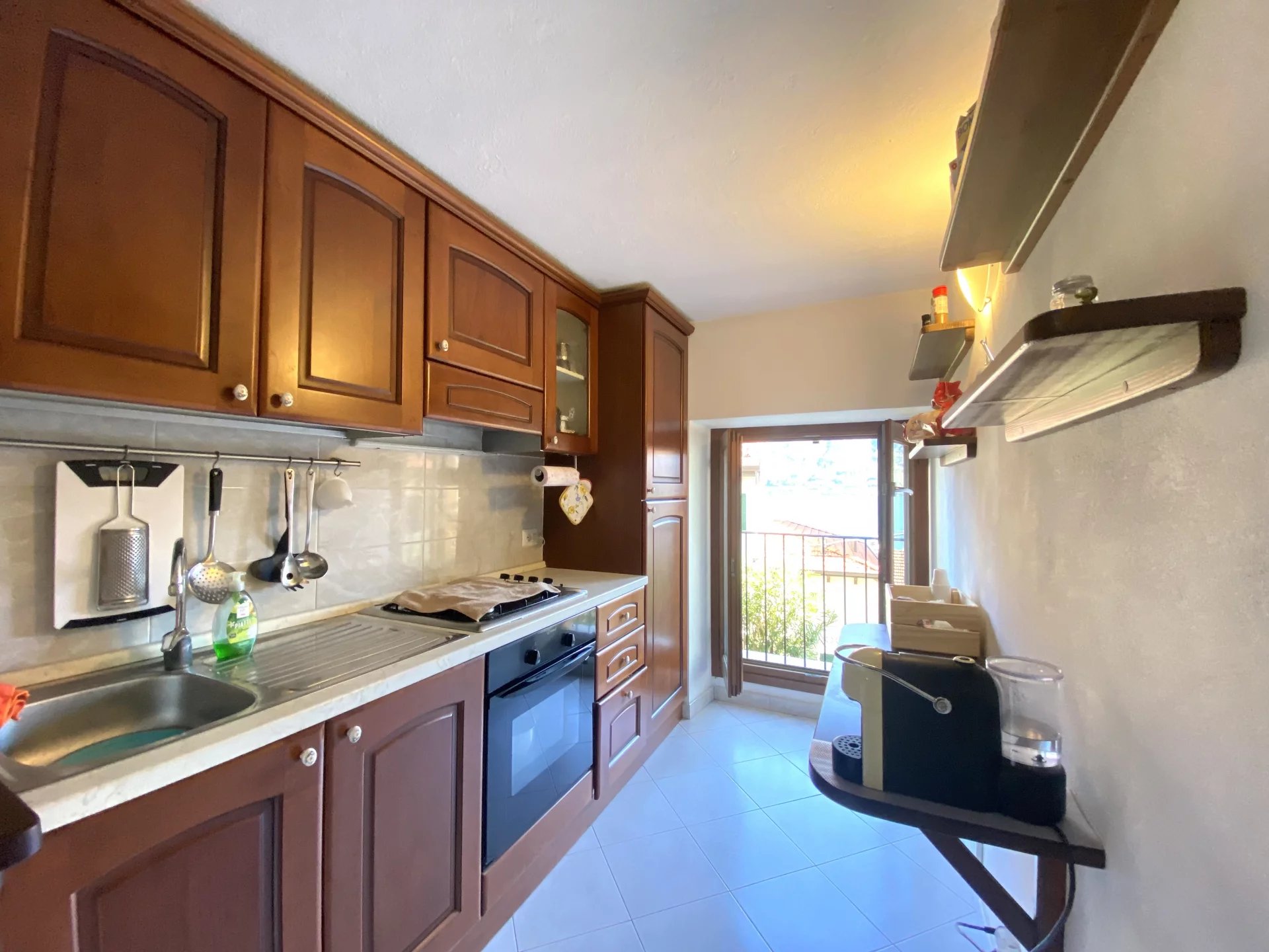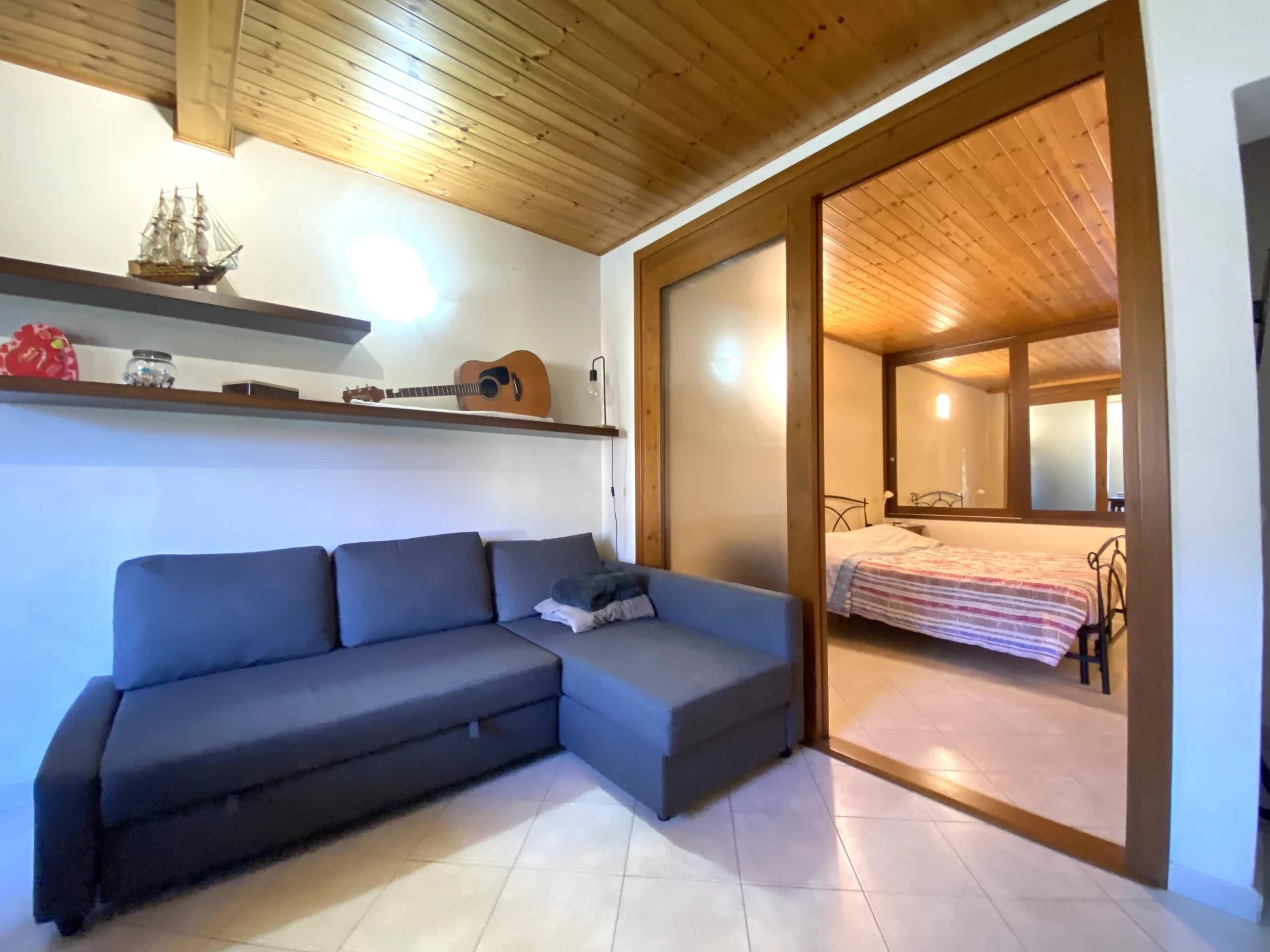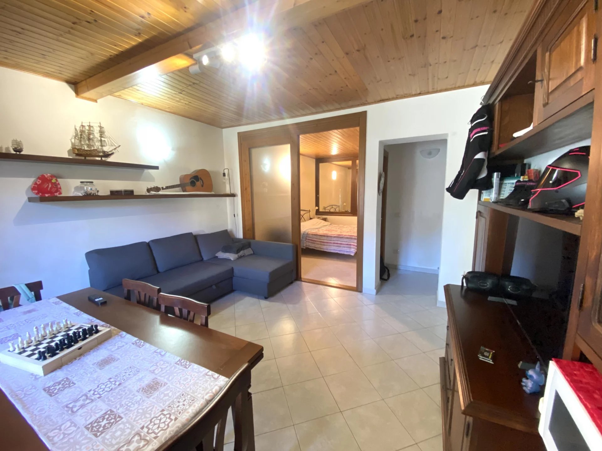 Colonno, a pochi passi dalle sponde del lago di Como e alle spalle della famosa e suggestiva Greenway, disponiamo di ampio bilocale e servizi con bellissima vista lago, dotato di terrazzo, giardinetto e ampia cantina di ca 35mq. L'immobile si dispone nel seguente modo: ingresso a piano terra da terrazzo privato ed un'ampia cantina; tramite scala interna si accede al piano primo dove troviamo una cucina e l'amoia zona soggiorno-notte. L'appartamento è stato recentemente ristrutturato e non necessita di alcun intervento di manutenzione. Gli infissi sono in legno doppio vetro con oscuranti di tipo persiana; i pavimenti sono in ceramica monocottura posati in diagonale; impianti elettrico ed idraulico completamente rifatti con la caldaia murale a gas recentemente sostituita e regolarmente revisionata. L'immobile viene ceduto dalla proprietà arredato di cucina con frigorifero, forno elettrico e a microonde, penisola, soggiorno con tavolo da pranzo, divano letto e letto matrimoniale, cabina armadio e cassettone, oltre a tenda da sole motorizzata sul giardino. A rendere il tutto ancor più accattivante è la presenza di un ampio terrazzo con zona barbecue dove passare ore di svago in allegria e un giardinetto di ca 40mq eventualmente sfruttabile con piccola piscina o dehor. Molto utile inoltre la cantina di ca 35mq con camino ,sfruttabile allo stato attuale come deposito, ma con possibilità di ampliarla in altezza e renderla una taverna abitabile.