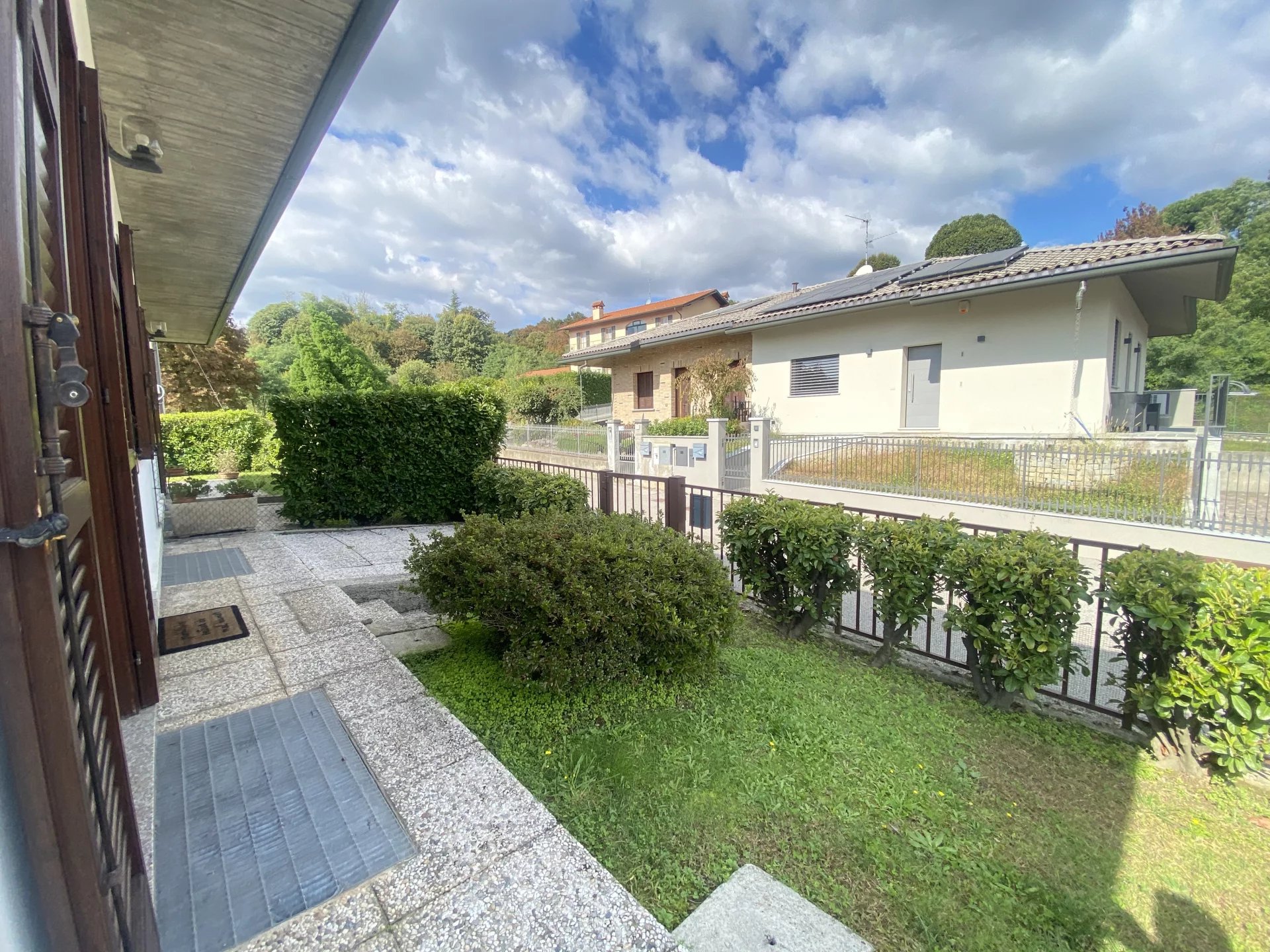 Cucciago, in zona tranquilla ed immersa nel verde ma comoda con tutti i principali servizi, disponiamo di splendida villetta bifamiliare disposta su un solo livello abitativo, con annessa taverna, lavanderia, locale hobby, box auto e giardinetto privato. La villetta si dispone nel seguente modo: ingresso con soggiorno-pranzo e cucina a vista, disimpegno in zona notte con un'ampia camera matrimoniale, una camera da letto, un bagno con vasca ed un locale guardaroba. Tramite una comoda scala interna in muratura, si accede al piano seminterrato dove troviamo una luminosa taverna con cucinotto, una lavanderia con box doccia, un ampio locale hobby ed il box auto. La soluzione è completata da un giardinetto di pertinenza ed il corsello per l'entrata nel box. Tutta la villetta è completamente cintata con ingresso carraio dotato di cancello elettrico e basculante del box anch'essa motorizzata. La casa si presenta in ottimo stato di manutenzione e non richiede di alcun intervento. Tutta la zona giorno è pavimentata in ceramica monocottura color panna posata in diagonale, mentre le camere da da letto sono in parquet. La taverna è pavimentata con piastrelle simil cotto posate ortogonalmente. Gli infissi sono in doppio vetro legno per il piano terra con oscuranti di tipo persiana e doppio vetro in alluminio per la taverna. Un bellissimo caminetto a legna in muratura, rende ancora più accogliente e caldo l'ambiente della tavernetta. Il box auto (al quale si accede direttamente dal seminterrato) è stato completamente piastrellato in ceramica. Il giardinetto che circonda la casa sui tre lati risulta completamente pianeggiante, non impegnativo come manutenzione e permette di passare ore all'aria aperta.