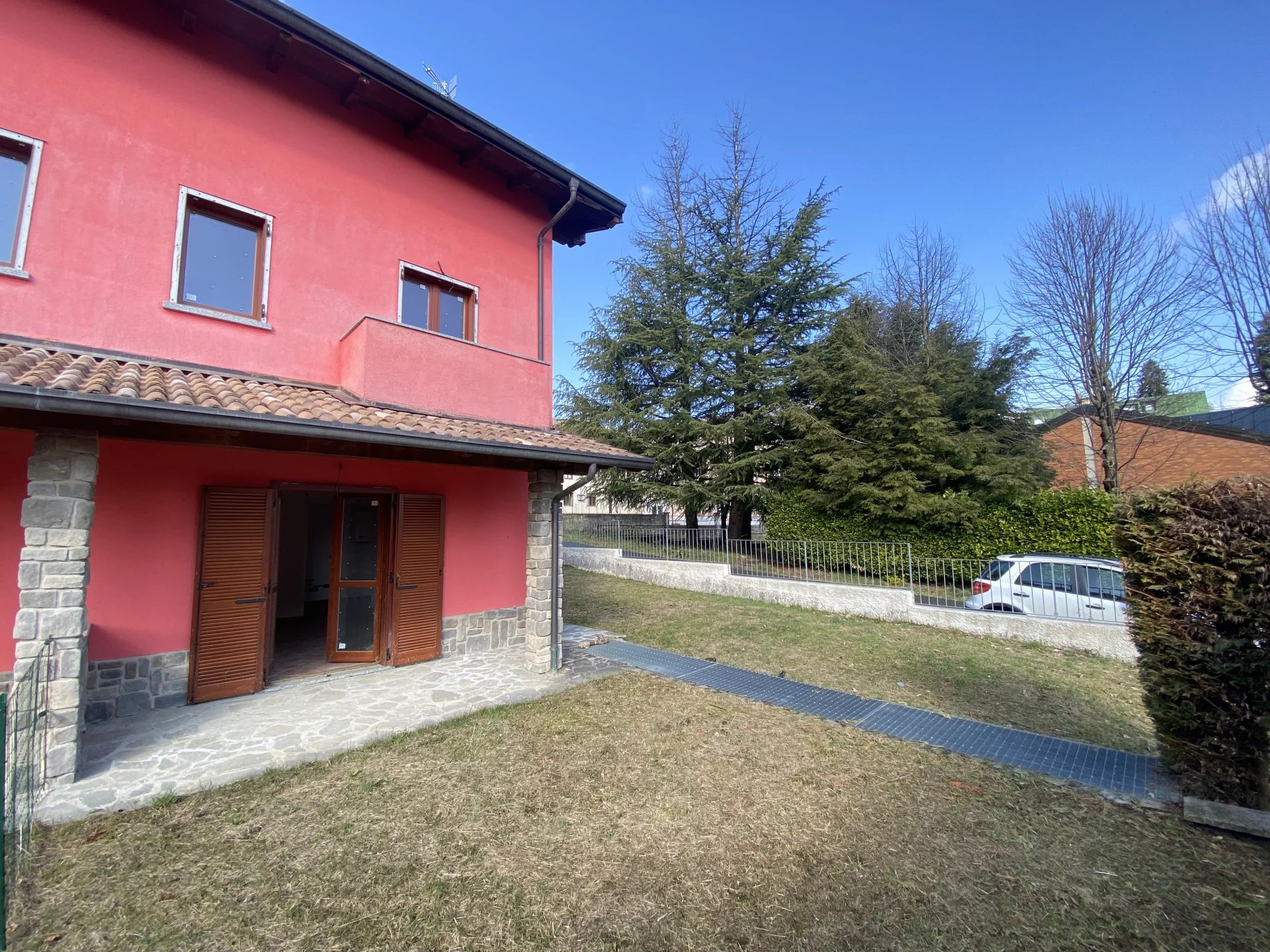 Alta Valle Intelvi, località Lanzo, in zona tranquilla e verdeggiante a pochi passi dal centro del paese, disponiamo di nuova villetta bifamiliare disposta su due livelli abitativi con box e giardino privato. La villetta si dispone nel seguente modo: ingresso e soggiorno con angolo cottura al piano terra; due camere da letto, bagno con box doccia e balconcino al piano primo; box auto con piccola lavanderia al piano seminterrato. Completa la soluzione un bellissimo giardino pianeggiante di ca 150mq. L'immobile è in fase di ultimazione con consegna prevista per fine primavera 2026. I pavimenti sono in ceramica monocottura posata in diagonale per la zona giorno e parquet per la zona notte; gli infissi sono in legno doppio vetro con oscuranti a persiana; il portoncino d'ingresso è di tipo blindato. Per un maggior confort ambientale e per ottimizzare i costi sul riscaldamento, la villetta è stata interamente coibentata con cappotto termico e dotata di pannelli solari con accumulatore di acqua calda. Nessuna spesa condominiale!