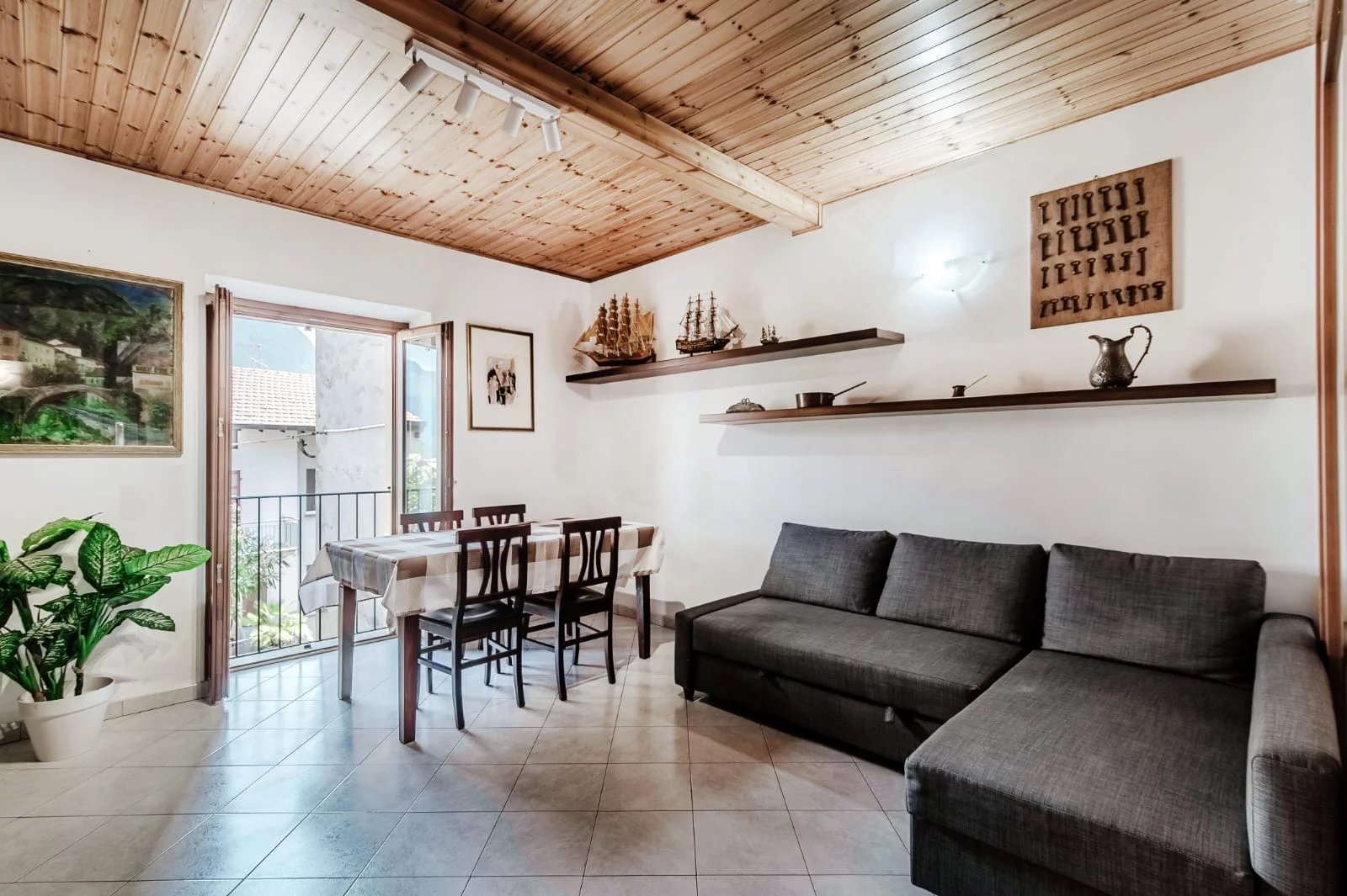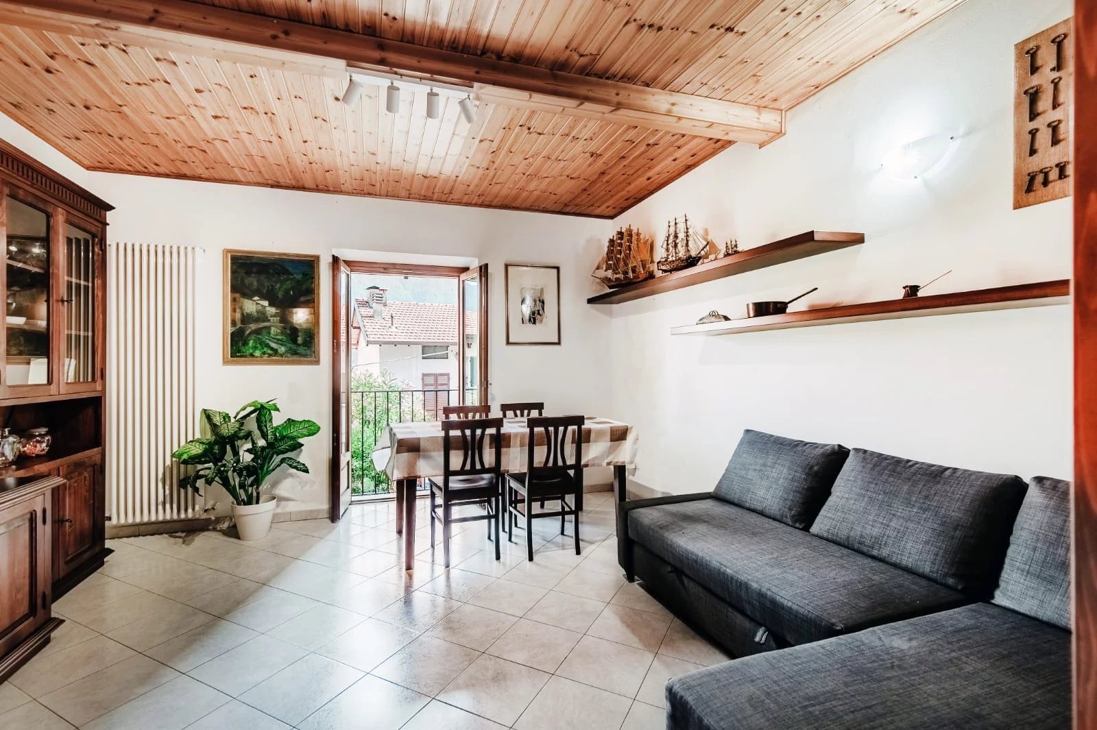 Colonno, a pochi passi dalle sponde del lago di Como e alle spalle della famosa e suggestiva Greenway, disponiamo di ampio bilocale e servizi con bellissima vista lago, dotato di terrazzo, giardinetto e ampia cantina di ca 35mq. L'immobile si dispone nel seguente modo: ingresso a piano terra da terrazzo privato ed un'ampia cantina; tramite scala interna si accede al piano primo dove troviamo una cucina e l'amoia zona soggiorno-notte. L'appartamento è stato recentemente ristrutturato e non necessita di alcun intervento di manutenzione. Gli infissi sono in legno doppio vetro con oscuranti di tipo persiana; i pavimenti sono in ceramica monocottura posati in diagonale; impianti elettrico ed idraulico completamente rifatti con la caldaia murale a gas recentemente sostituita e regolarmente revisionata. L'immobile viene ceduto dalla proprietà arredato di cucina con frigorifero, forno elettrico e a microonde, penisola, soggiorno con tavolo da pranzo, divano letto e letto matrimoniale, cabina armadio e cassettone, oltre a tenda da sole motorizzata sul giardino. A rendere il tutto ancor più accattivante è la presenza di un ampio terrazzo con zona barbecue dove passare ore di svago in allegria e un giardinetto di ca 40mq eventualmente sfruttabile con piccola piscina o dehor. Molto utile inoltre la cantina di ca 35mq con camino ,sfruttabile allo stato attuale come deposito, ma con possibilità di ampliarla in altezza e renderla una taverna abitabile.